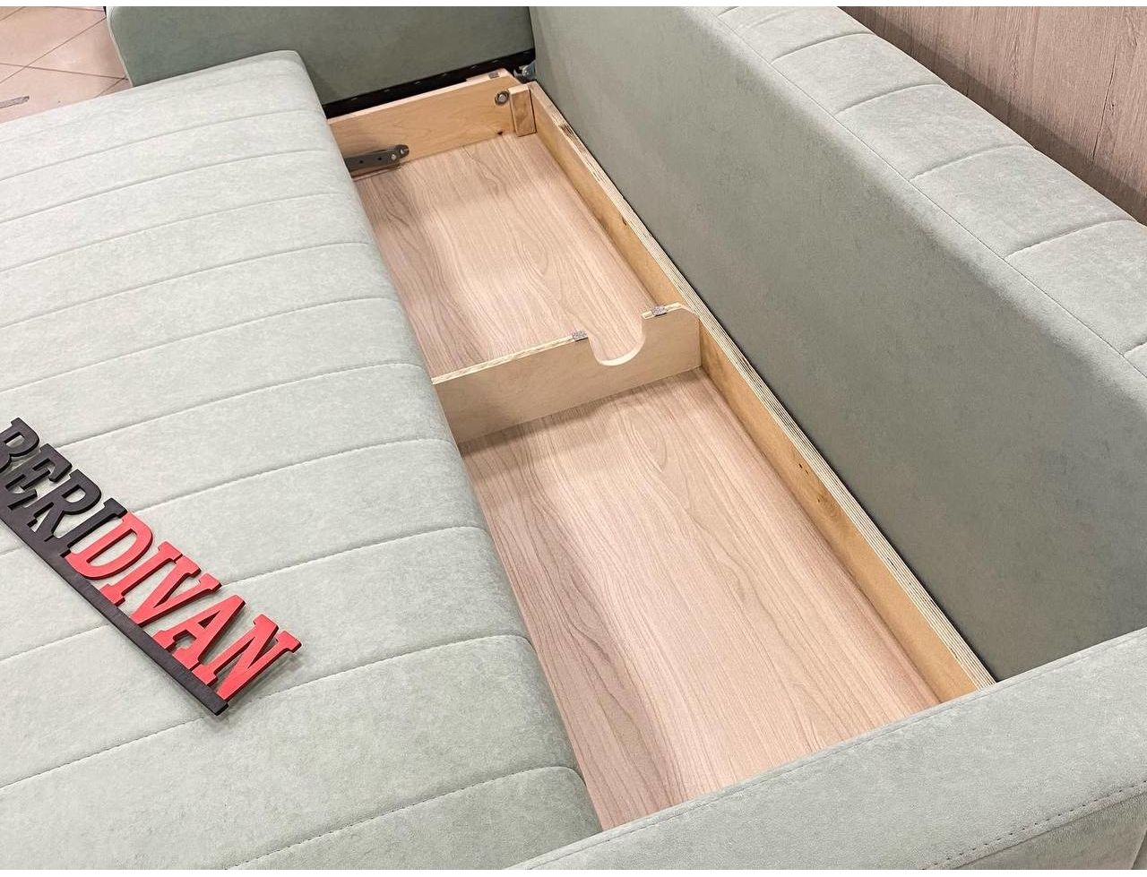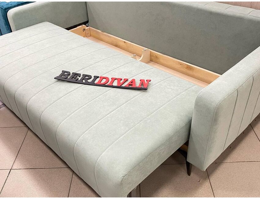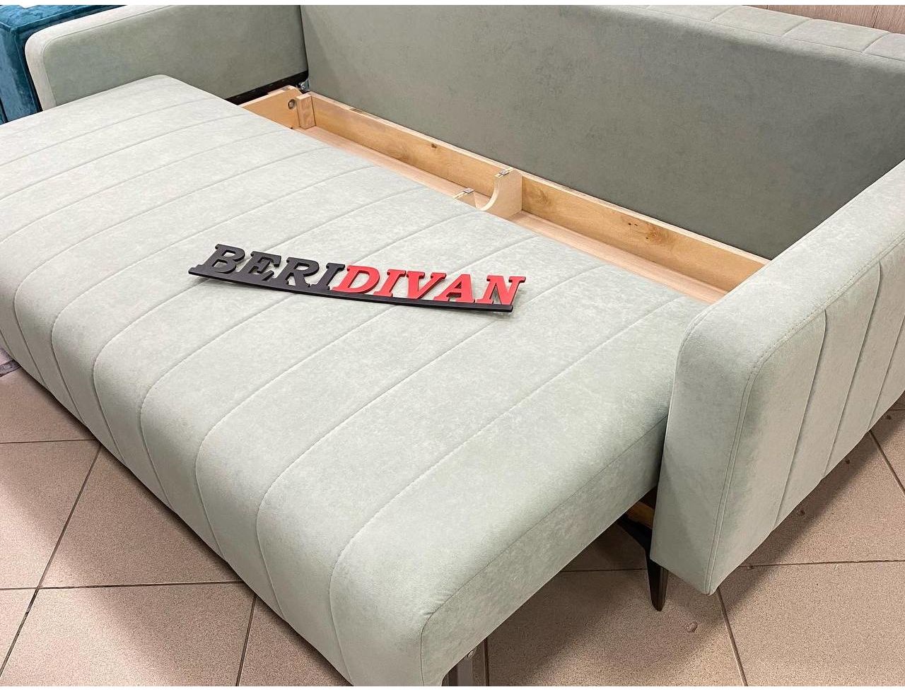 Диван на высоких, устойчивых ножках отлично подойдет как для сна, так и для отдыха.