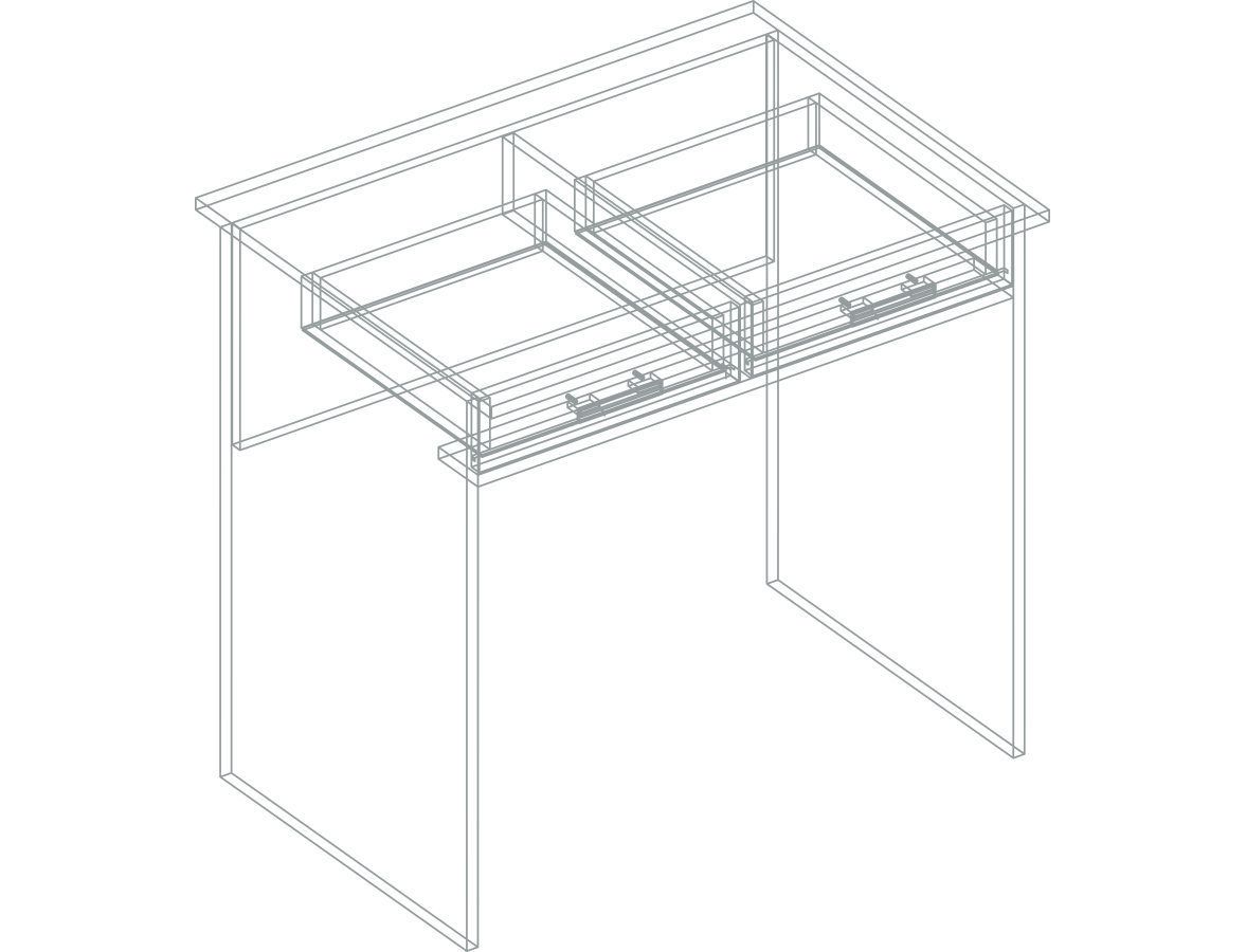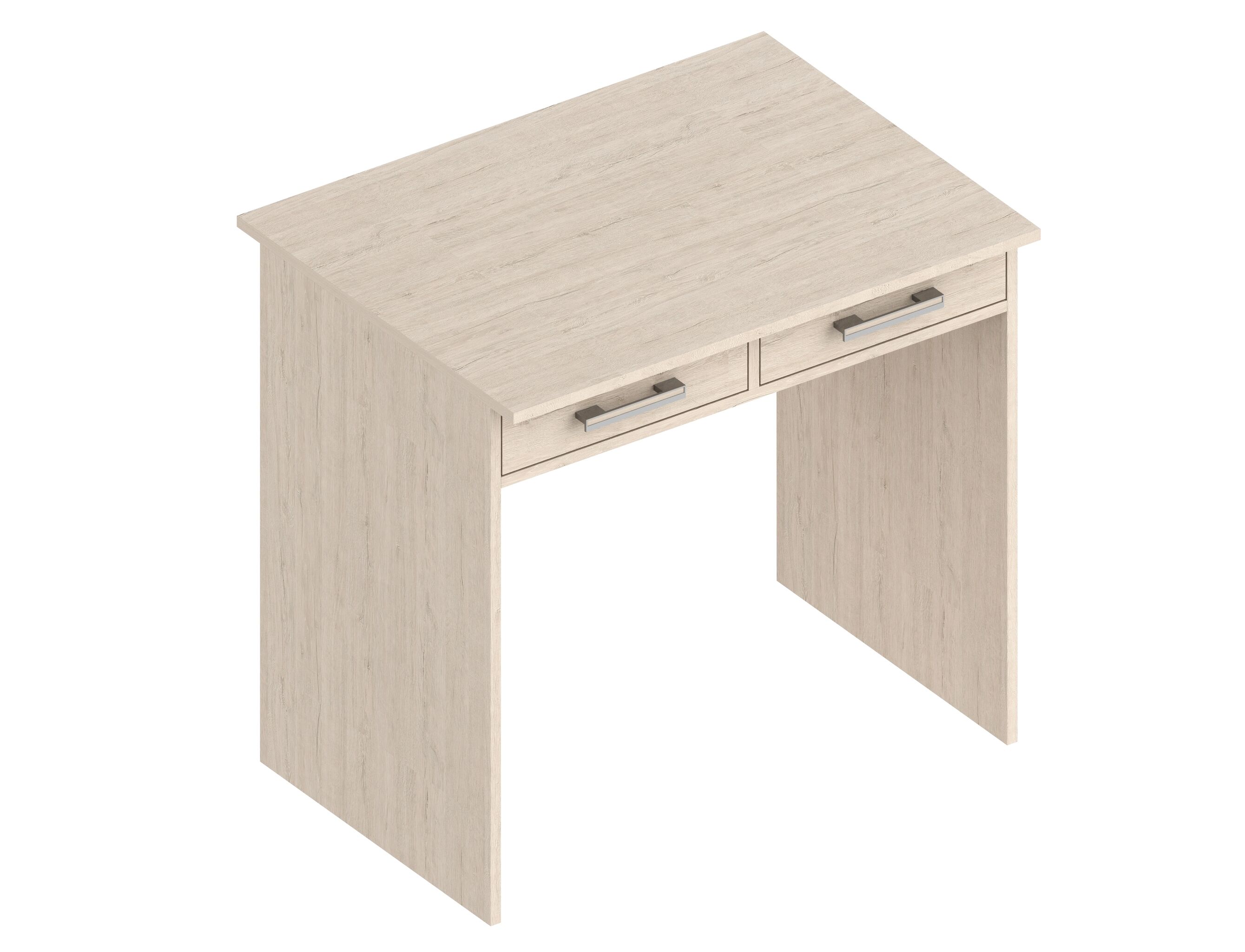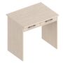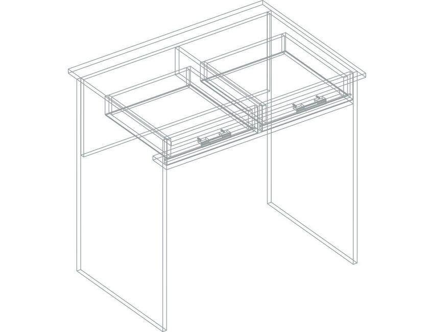 Стол со светлой столешницей и темными боковушками, удобный по глубине для одного пользователя. Стол снабжен двумя выдвижными ящиками с декоративными ручками.