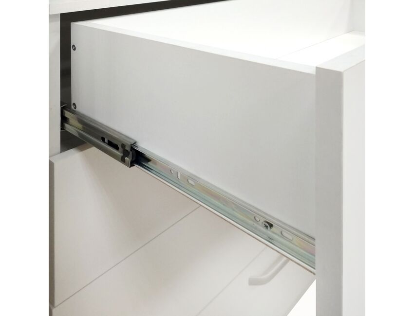 Выкатные ящики работают на шариковых направляющих полного выдвижения - тихих, надежных, позволяющих увидеть и использовать все пространство ящика.