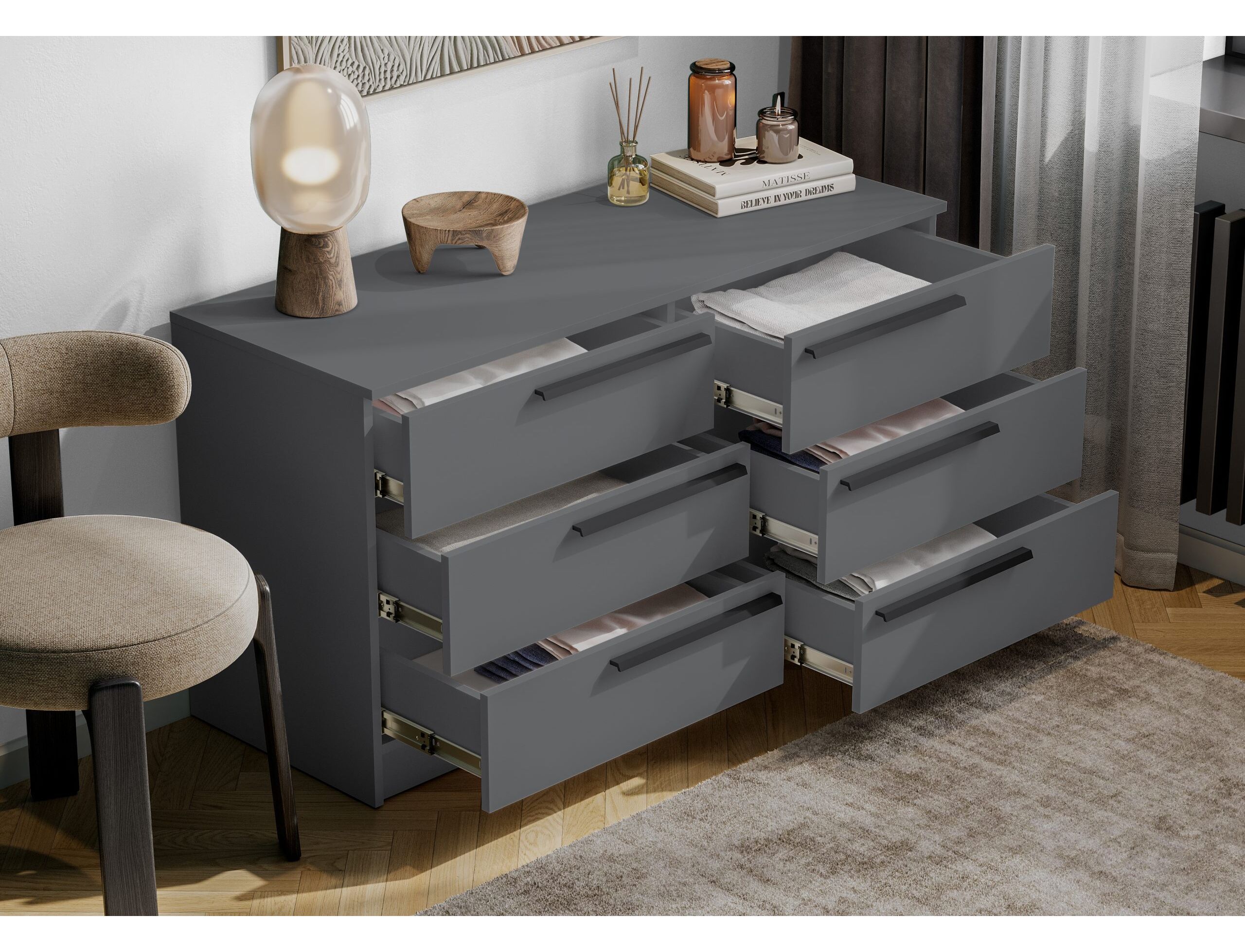 Комод Берген с выдвижными ящиками — отличный вариант для небольшой комнаты или прихожей.