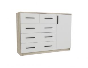 Комод с дверью белый шагрень отлично подойдет для организации хранения как в спальне, так и в гостиной. Изделие изготовлено из ламинированного ДСП толщиной 16 мм, оклеено по периметру кромкой ПВХ 0,4 мм. Фасад также из ЛДСП 16мм по периметру оклеен кромкой ПВХ 1мм. Задняя стенка ДВП. Крышка выполнена из плиты 22мм и оклеена кромкой 2мм