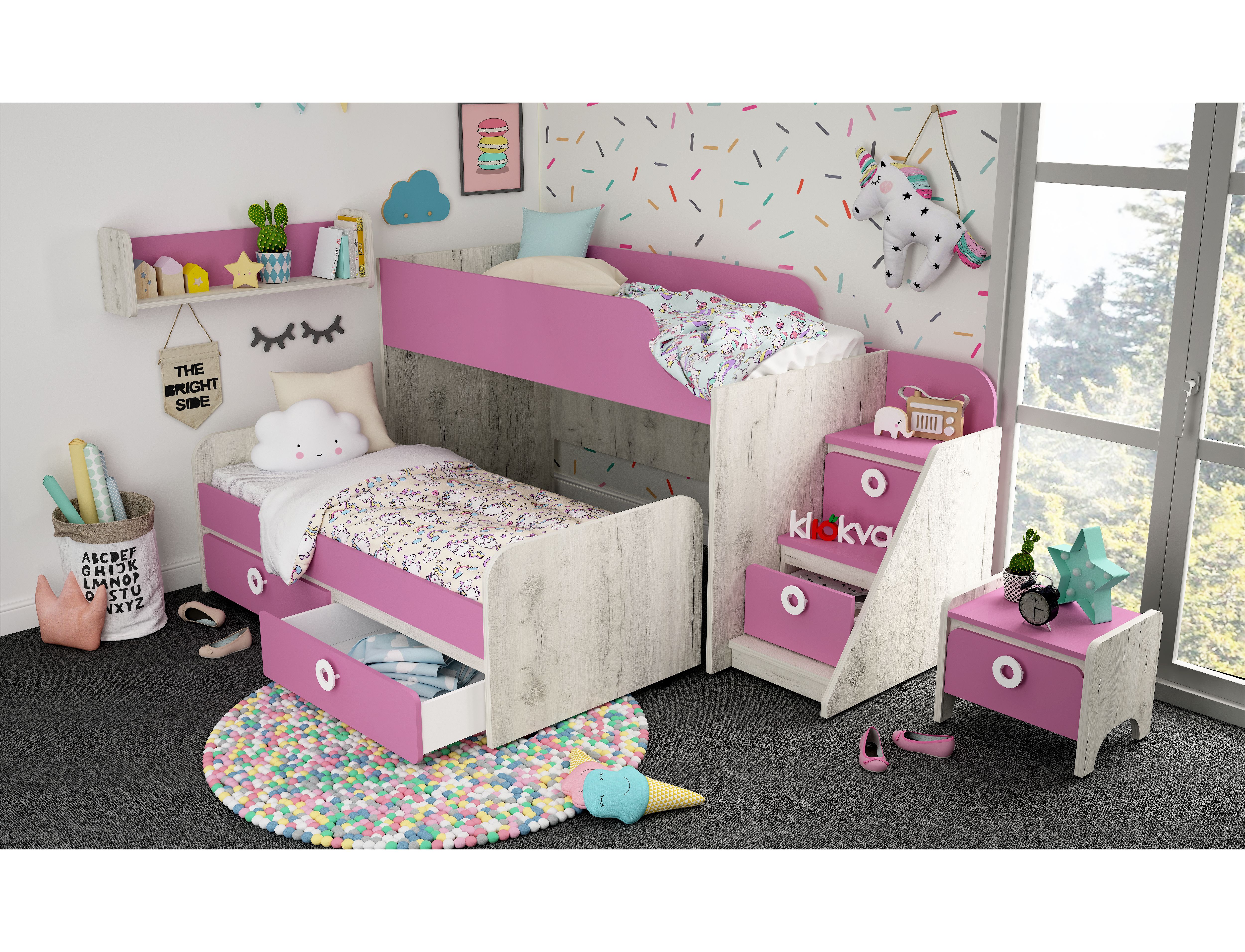 Выбор модулей дает возможность создавать комнаты, где дети могут играть, спать и даже мечтать как стать взрослым. Неограниченные возможности фабрики «KLЮKVA» позволяют экспериментировать, предоставляя Вам возможность свободно черпать вдохновение из собственных представлений о том, как реализовать свои мечты в реальность.