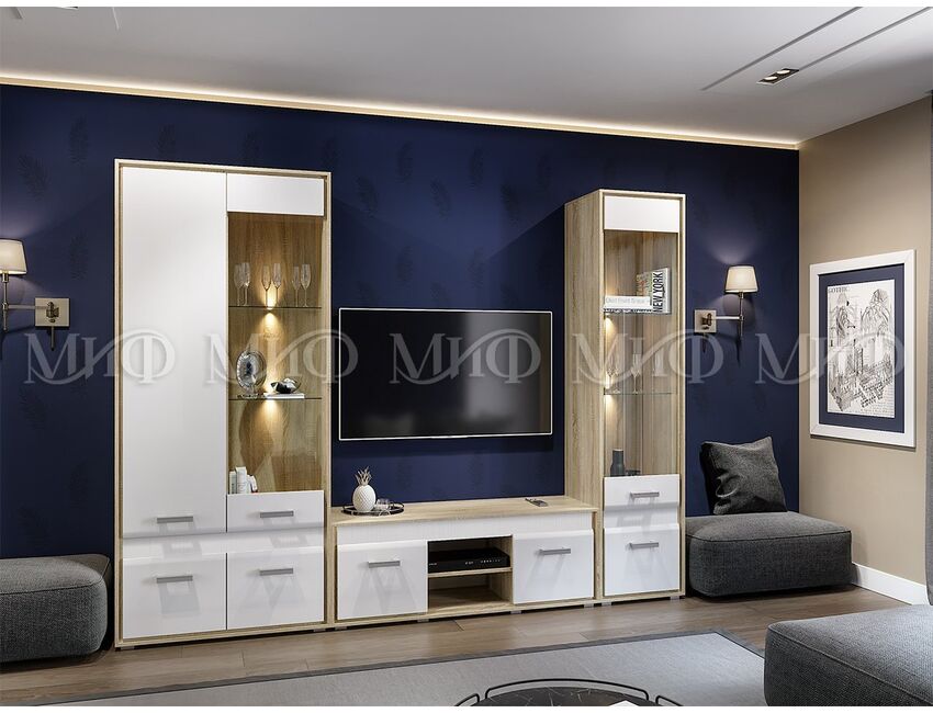 Приятным дополнением к спальне Фортуна является изящная гостиная с одноименным названием. Теплый древесный корпус гостиной украшен сияющим глянцем, зрительно расширяющим помещение. Сочетание палитры цветов удивительное и необыкновенное. Такая мебель не только украсит комнату, но и создаст уют и комфорт в вашем доме.