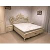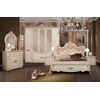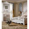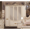 Спальня Адель состоит из шикарной двуспальной кровати с мягким изголовьем с каретной стяжкой. Пятистворчатый шкаф с зеркальными фасадами, в котором много полок и отсек для платяного шкафа, две прикроватные тумбочки, комода и навесного зеркала. Молочный оттенок спальни впишется в любую цветовую гамму. Золотая патина и декор отлично создадут классический стиль в вашей спальне.