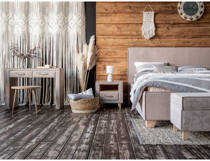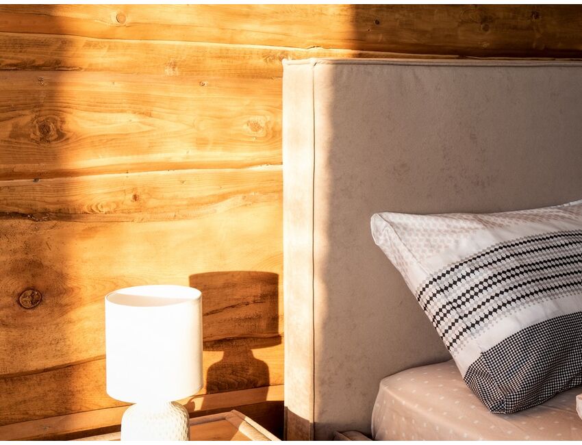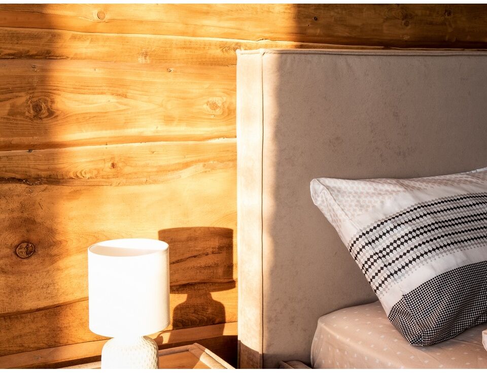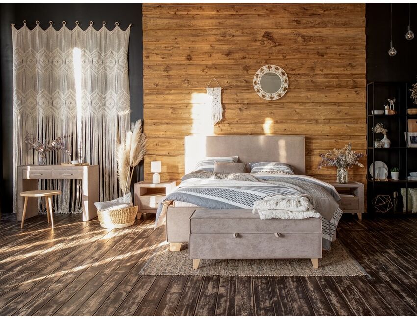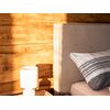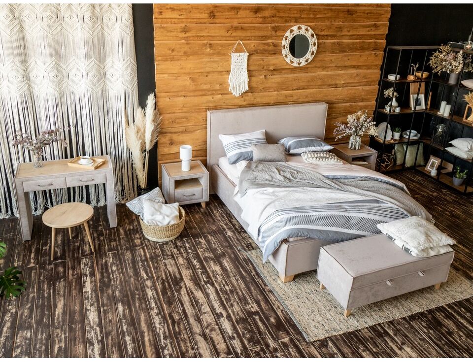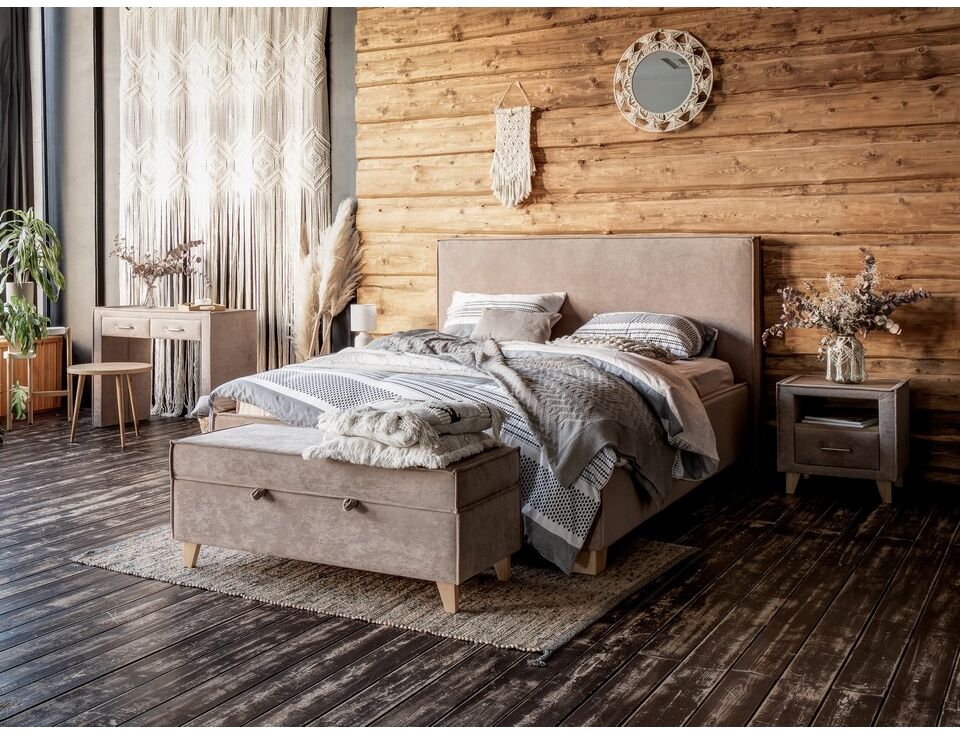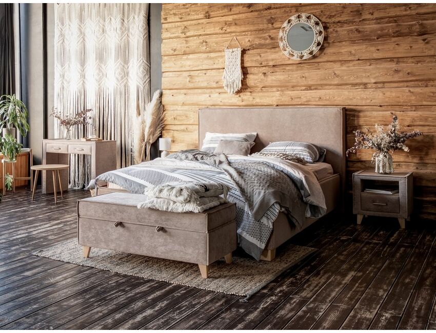 Мягкая кровать с ножками из массива березы и объемным изголовьем