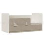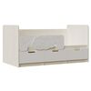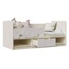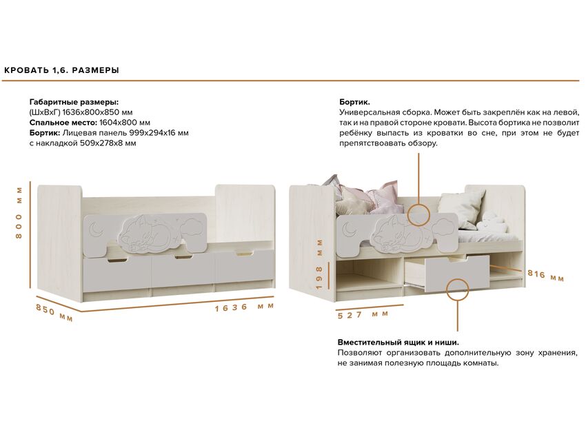 Классическая детская кровать Юниор-4 выполнена в приятных теплых тонах. Кровать имеет один ящик выдвижной по середине, и два отсека по краям с откидными дверками.Безопасность ребенка гарантируется наличием бортиков со всех сторон, а также отсутствуют ручки на ящиках. Так ребенок не сможет зацепиться во время игр в детской. Кровать однозначно полюбится малышам. Лицевая часть бортика может устанавливаться как на левую, так и на правую стороны. При желании ее можно демонтировать.