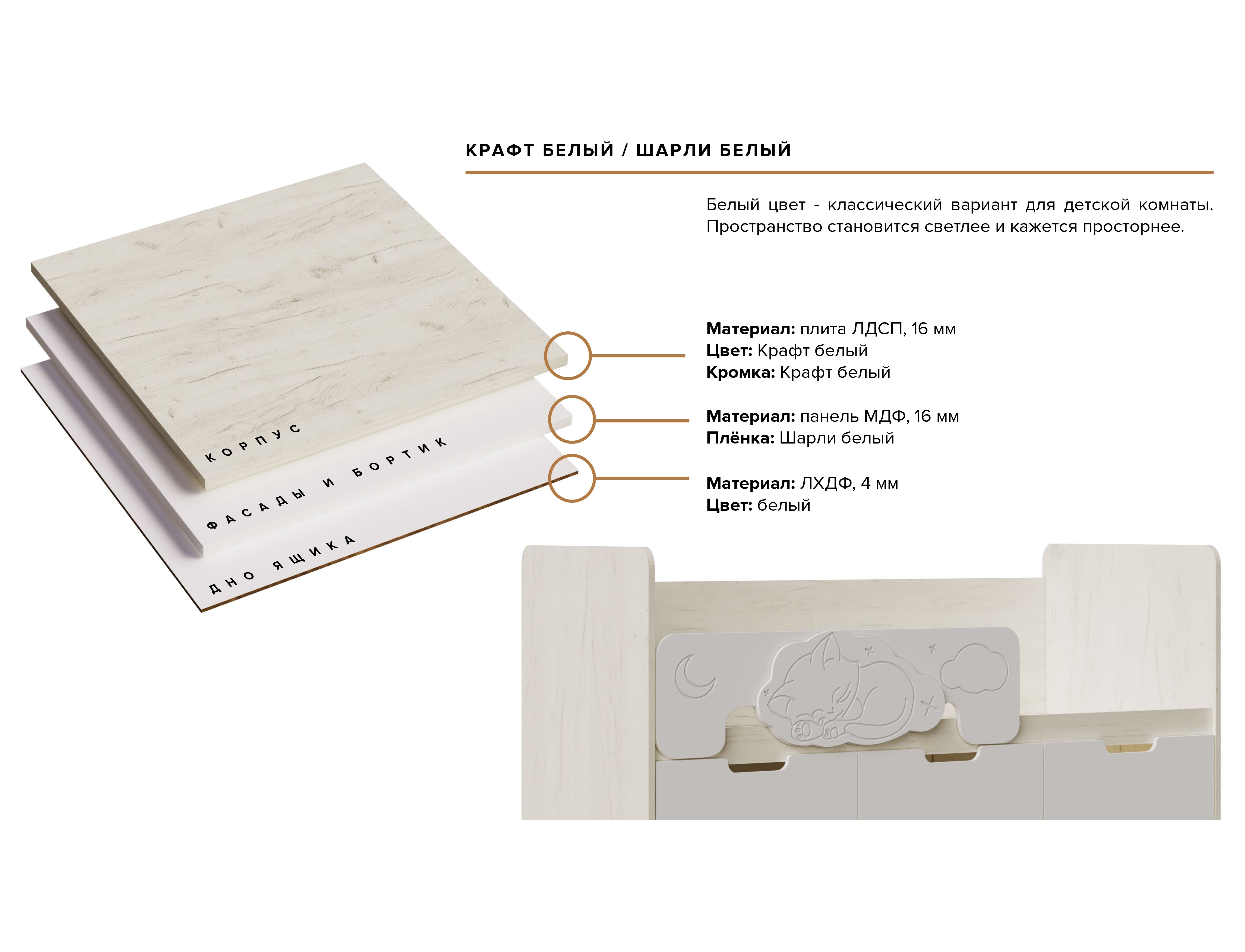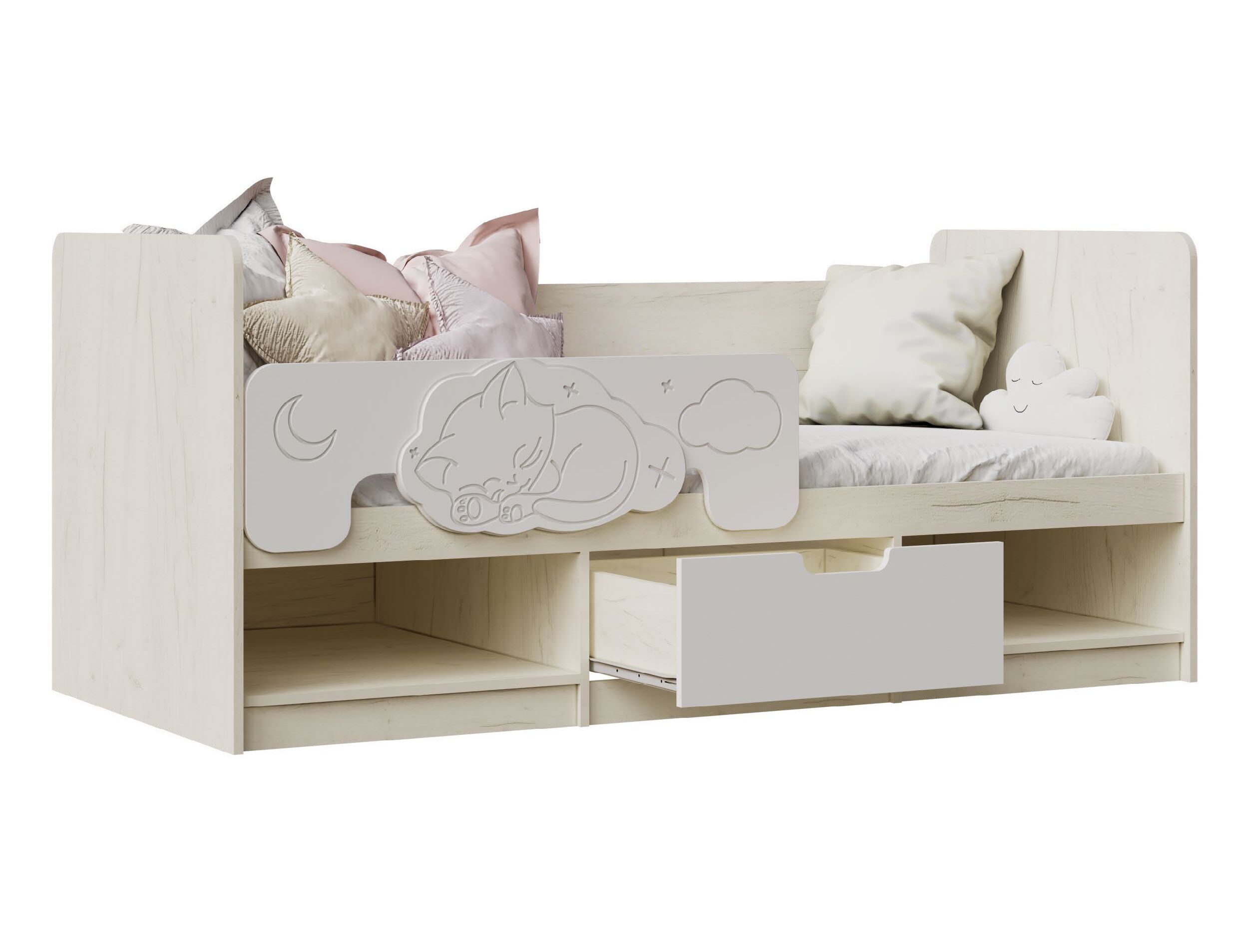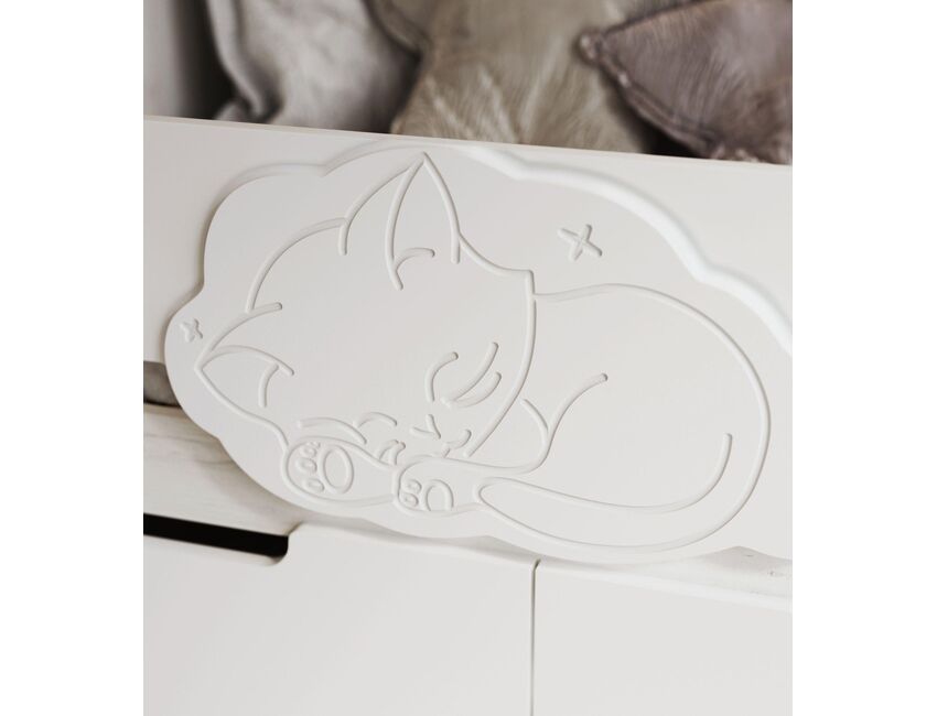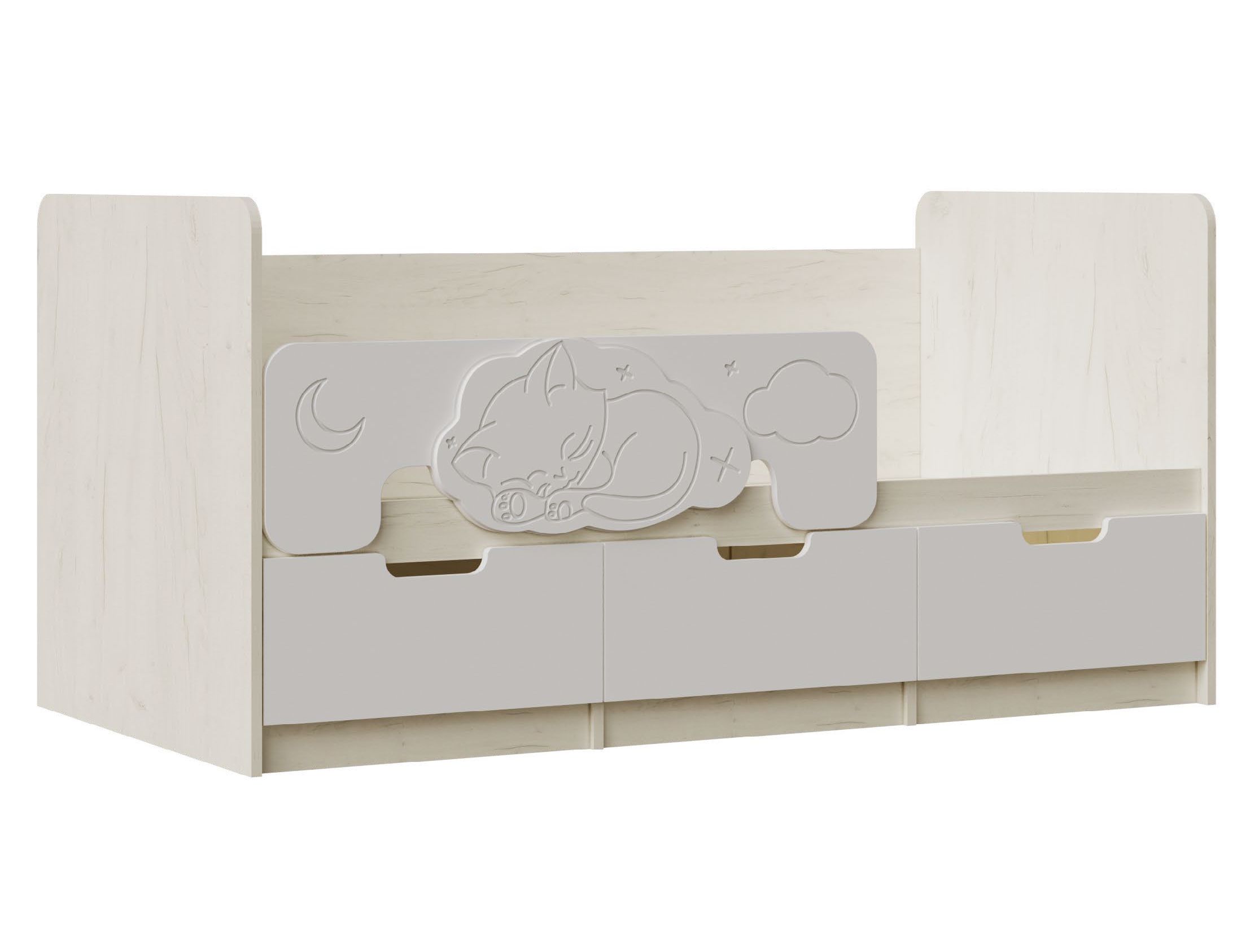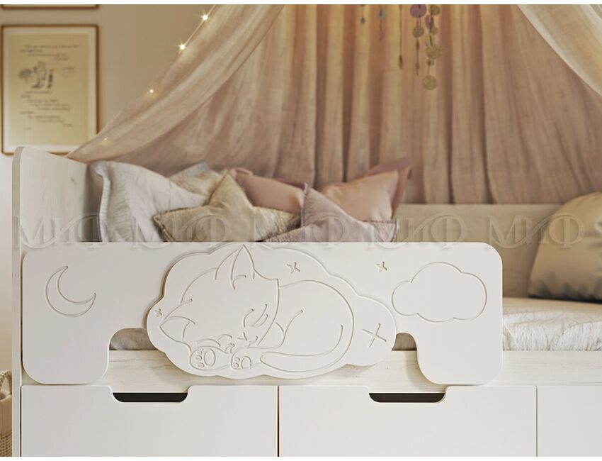 Представляем Вам новую детскую кровать «Юниор-4». Отличительной особенностью новинки является съемный бортик, украшенный уникальным объемным рисунком - милым декором из МДФ в виде котенка. Лаконичный дизайн, органично дополненый приятными деталями, мягкая цветовая гамма и эргономичная конструкция - и это ещё не все преимущества новой кровати от МК «МиФ».