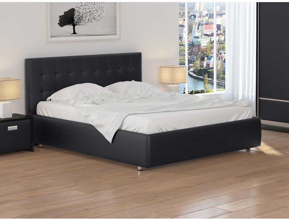 Кровать из экокожи или мебельной ткани.