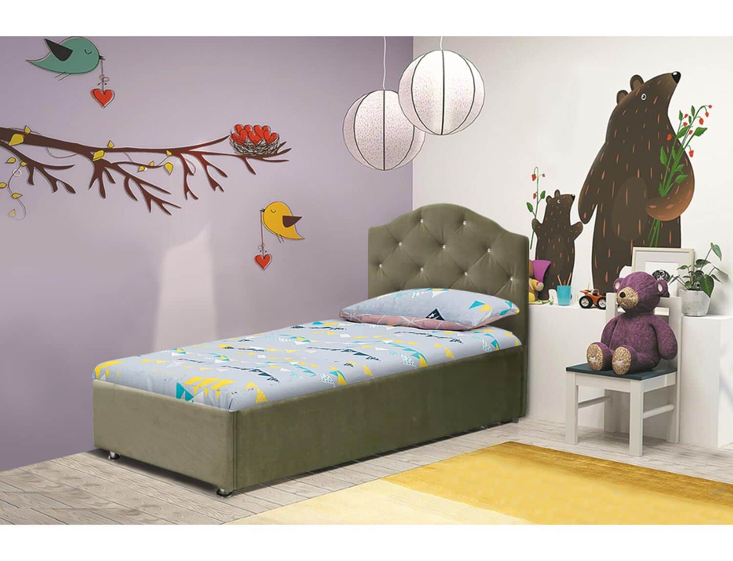 Кровать можно заказать в любом цвете и ткани, в палитре более 100 вариантов. Цена зависит от категории ткани. Цена указана за кровать в 1 категории ткани.