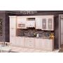 Характеристики: Цвет: Бежевый/Золотая патина. Материал фасадов: МДФ фрезерованный с элементом рисунка. Покрытие: Лаковое покрытие крашенная эмаль. Корпус: ЛДСП Ваниль. Столешница и фартук: Черная бронза 38 мм влагостойкая. Наполнение комплекта: Шкафы нижние и верхние с фасадами, карниз для верхних шкафов. Петли с доводчиками. Направляющие для ящиков: Металлические полного выдвижения. Столешница. Стеновая панель под цвет столешницы с плинтусом. Бутылочницы.