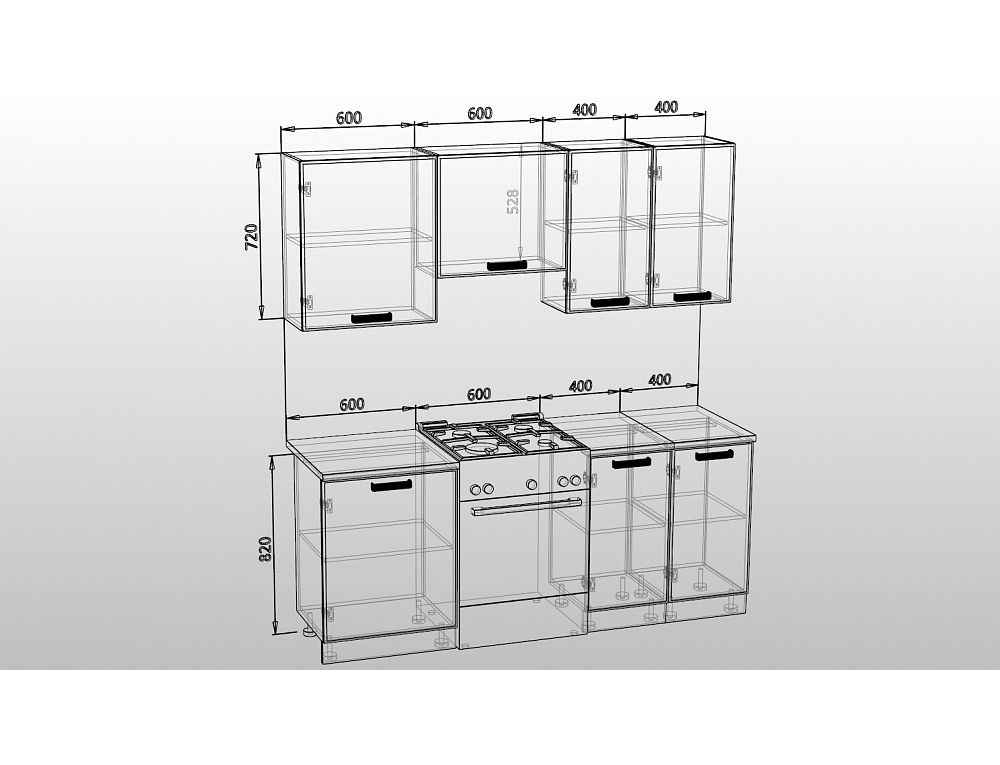 Габаритный размер готового набора модулей с учетом газовой плиты на 60см: 200см.