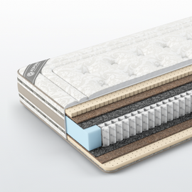 Данная модель изготовлена на основе независимого пружинного блока S1000 в сочетании с натуральными и долговечными материалами, равномерно распределяет нагрузку тела по всей своей площади. Кокосовая койра и латекс - два самых долговечных материала, обладающие эластичностью и способностью держать высокую нагрузку долгие годы без деформации и разрушения. Прекрасный матрас для тех, кто ценит надежную опору во время сна.Состав