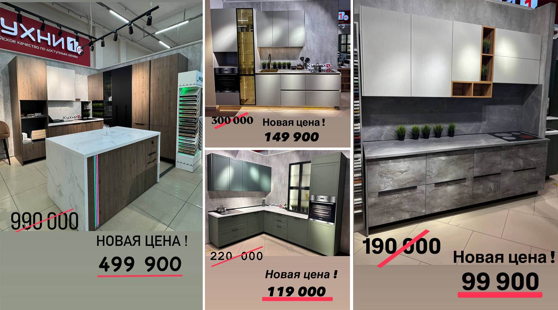 Огромный выбор скидок: Скидки на 100 моделей. Кухни на любой вкус: от лаконичного минимализма до уютной классики. Найдется идеальный вариант и для скромной хрущевки, и для роскошного лофта.