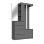 Компактная прихожая вмещает всё необходимое: крючки, зеркало, открытые полки, полку для обуви и выкатные ящики.