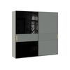 Два отсека, расположенные по правую и левую стороны от центральных, включают в себя по 2 ящика на направляющих скрытого монтажа, длиной 450 мм. Фасад ящиков с фрезерованными выемками для открывания. Полезная площадь ящика Д.375 х В.96 х Г.434 мм.