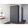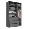 В шкафу есть всё необходимое: штанга для вешалок, большие полки и выдвижные ящики.