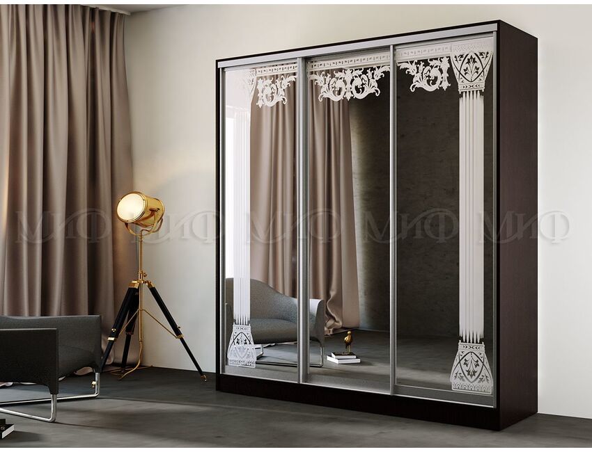 Шикарный шкаф с интересным дизайном, внутреннее наполнение универсальное. Большие зеркала визуально сделают помещение просторней и светлей. Шкаф-купе "Тринити-5 NEW" вписывается в любую комнату в вашей квартире.
