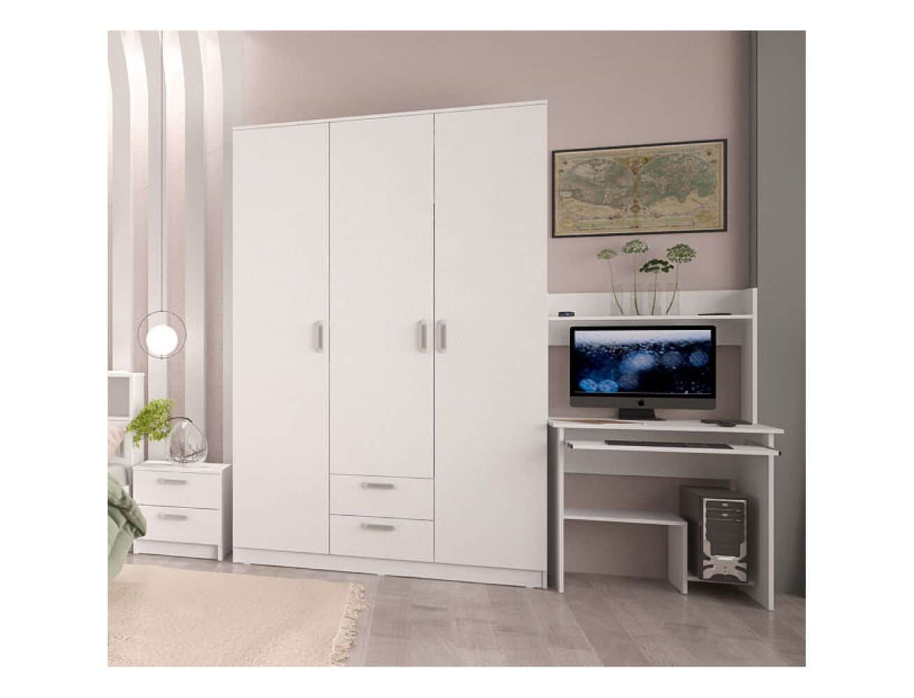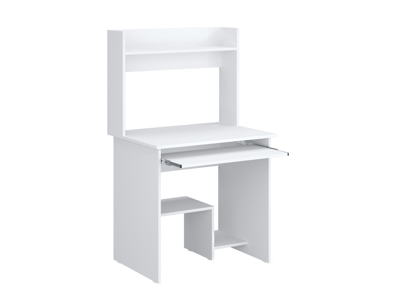 Практичный и максимально компактный компьютерный стол универсального белого цвета подойдет даже в небольшое пространство.