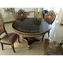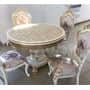 Круглый стол со столешницей под мрамор станет акцентным центром в вашем доме. Стол раздвижной, площадь стола можно увеличить с помощью механизма, и из круглого он превратиться в овальный. Одна ножка стола - объемная балясина - внесет в интерьер атмосферу роскоши и богатства.