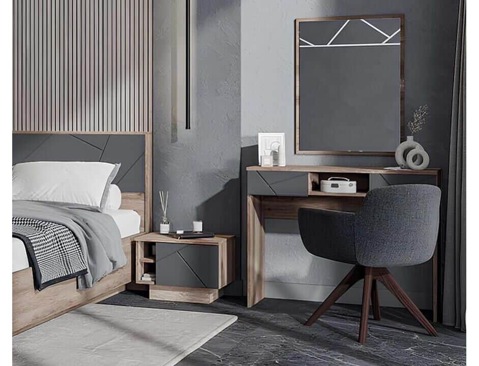 Туалетный столик оснащен двумя выдвижными ящиками.Он отлично впишется как в спальню, так и в детскую комнату. Сочетайте столик с другими предметами мебели из линейки Даллас.