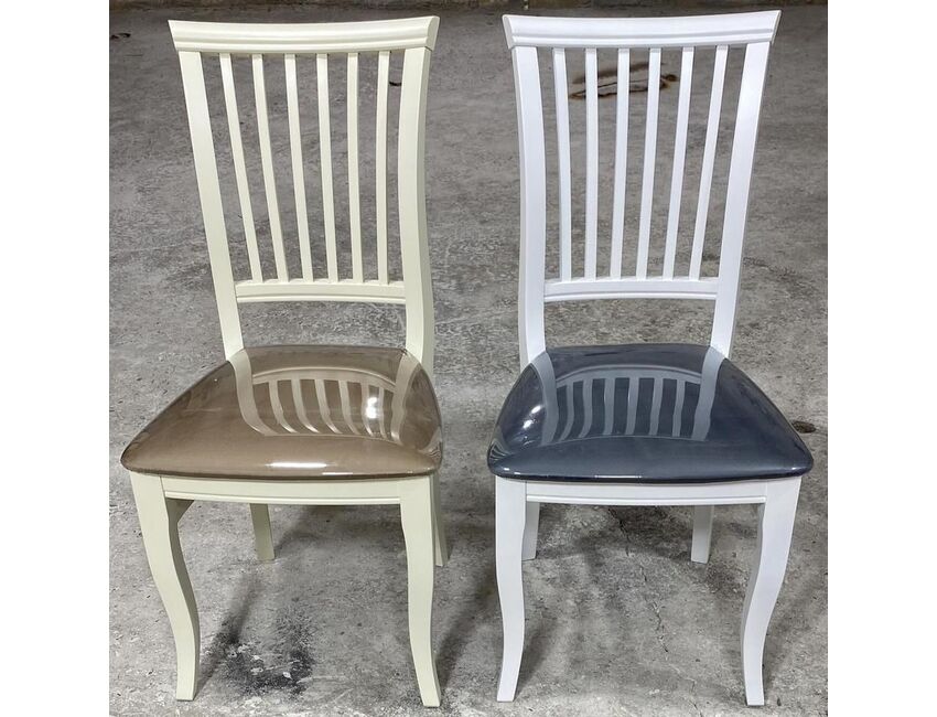 Элегентные стулья Ницца представлены в трех цветах: слоновая кость, орех, белый. Цвет ткани для сидушки вы можете выбрать как однотонный, так и с рисунком. Жесткая изящная спинка имеет физиологичное положение, при ней спина отдыхает. Стул очень легко мыть, это удобно, если в доме есть дети. Сидушка имеет транспортировочную пленку, которую вы можете снять.