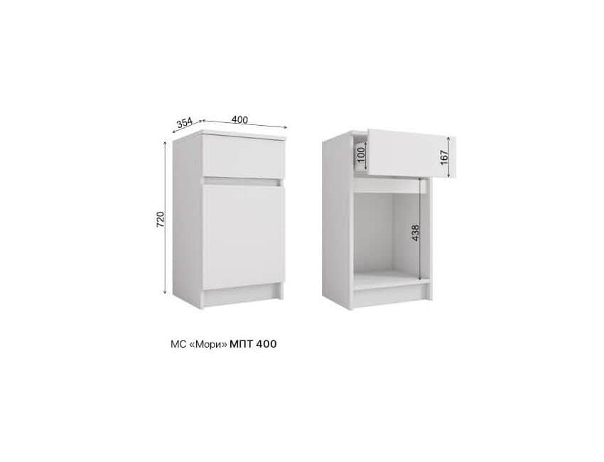 Тумба, компактная и простая в сборке, с выдвижным ящиком на роликовых направляющих.